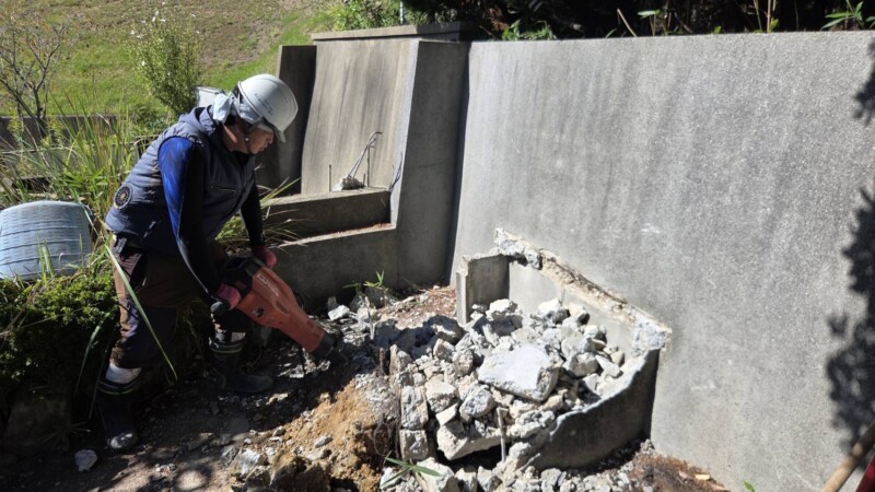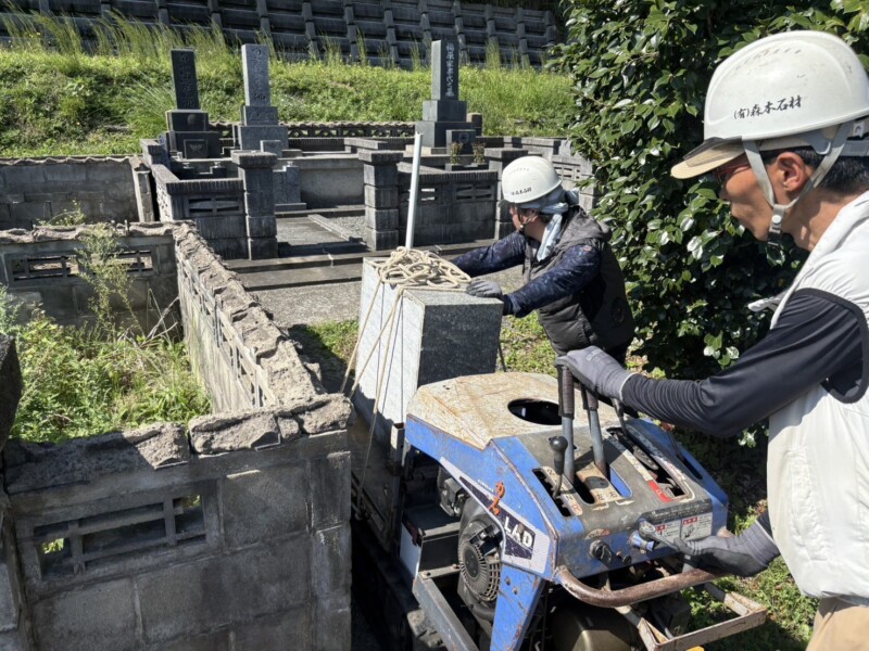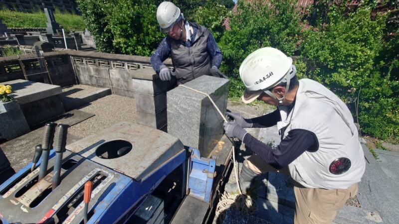 クレーンが入らない墓所ですので手作業で解体していきます💪