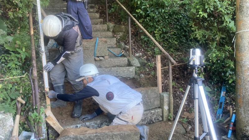 益田市の神社様の階段組直し工事!