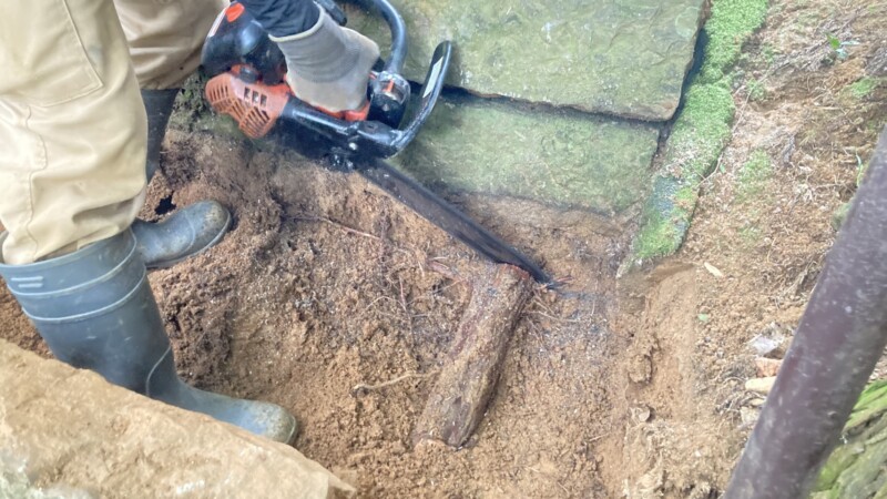 根っこは掘ってチェーンソーで切っていきます🌟