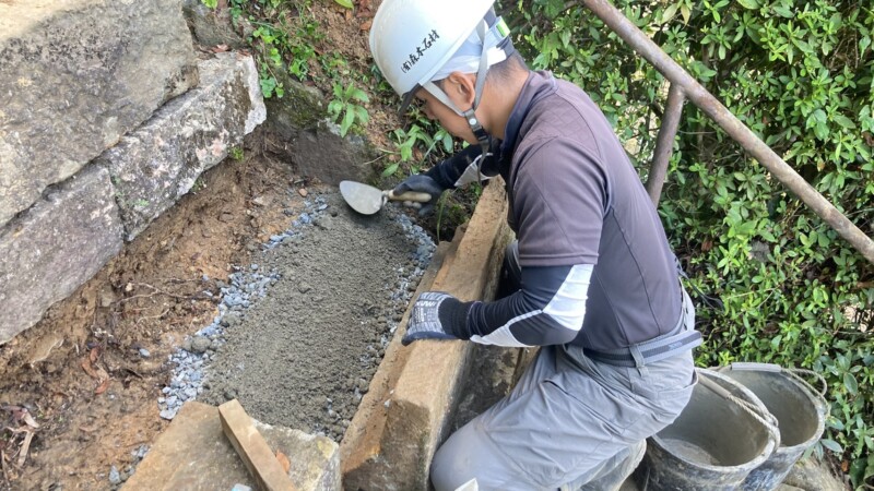 階段の石はそれぞれ形も違いますので1つ1つ地道に設置していきます!
