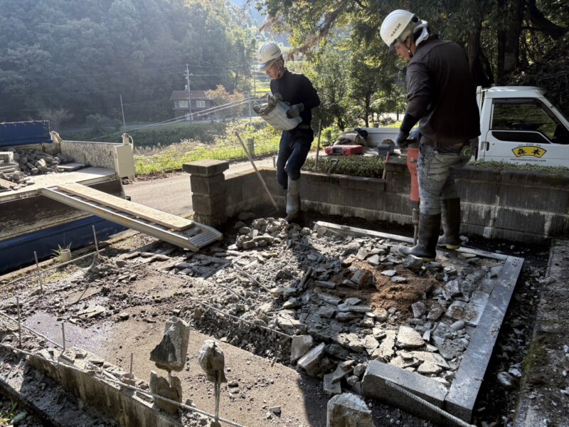 ピックを使い硬い土間をドンドンはつっていきます💪