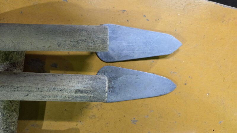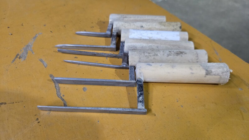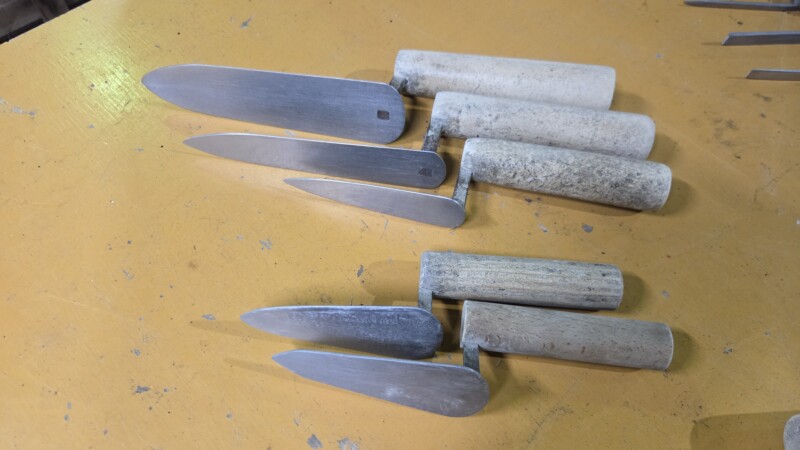 お次は笹葉鏝に目地鏝たちです。太さや長さの違うものを状況に応じて使い分けていきます!