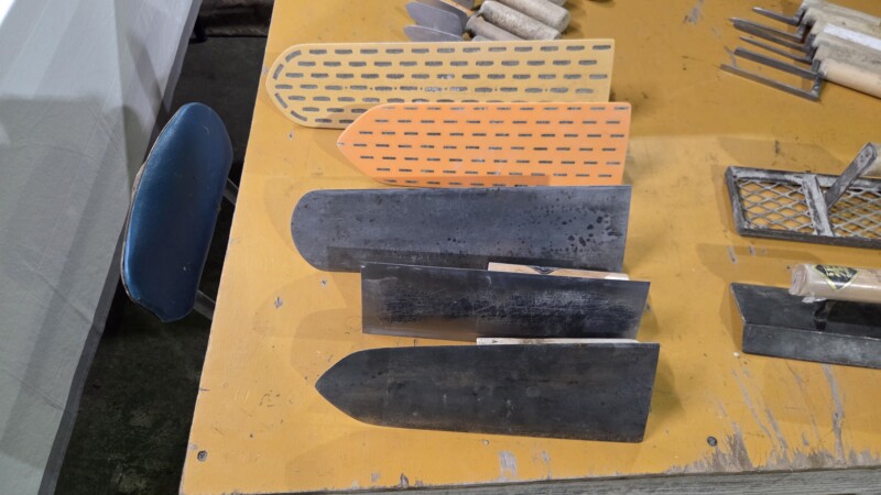まずはこちら!ならし鏝に仕上げ鏝ですが鏝の大きさ鏝先の形様々ですね。写真では伝わりにくいんですが下3本の仕上げ鏝はしなり具合といいますか、柔らかさが違うんです!コンクリートの状況により使い分けております。