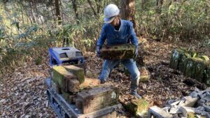 十分に固まった基礎の上に、石を一つひとつ丁寧に据付ていきました。