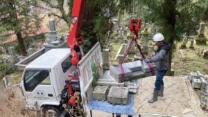 ⑦墓石の撤去作業を行います。