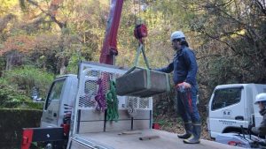 K家様の墓所は山の上にあり搬出が困難な為現地で墓石を整理させていただきますがとっても大きな個人墓が建てられています。